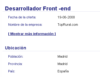 Descripción de la oferta: buscamos para TopRural a un candidato con experiencia en desarrollo de la capa front-end de aplicaciones web. Se responsabilizará de: